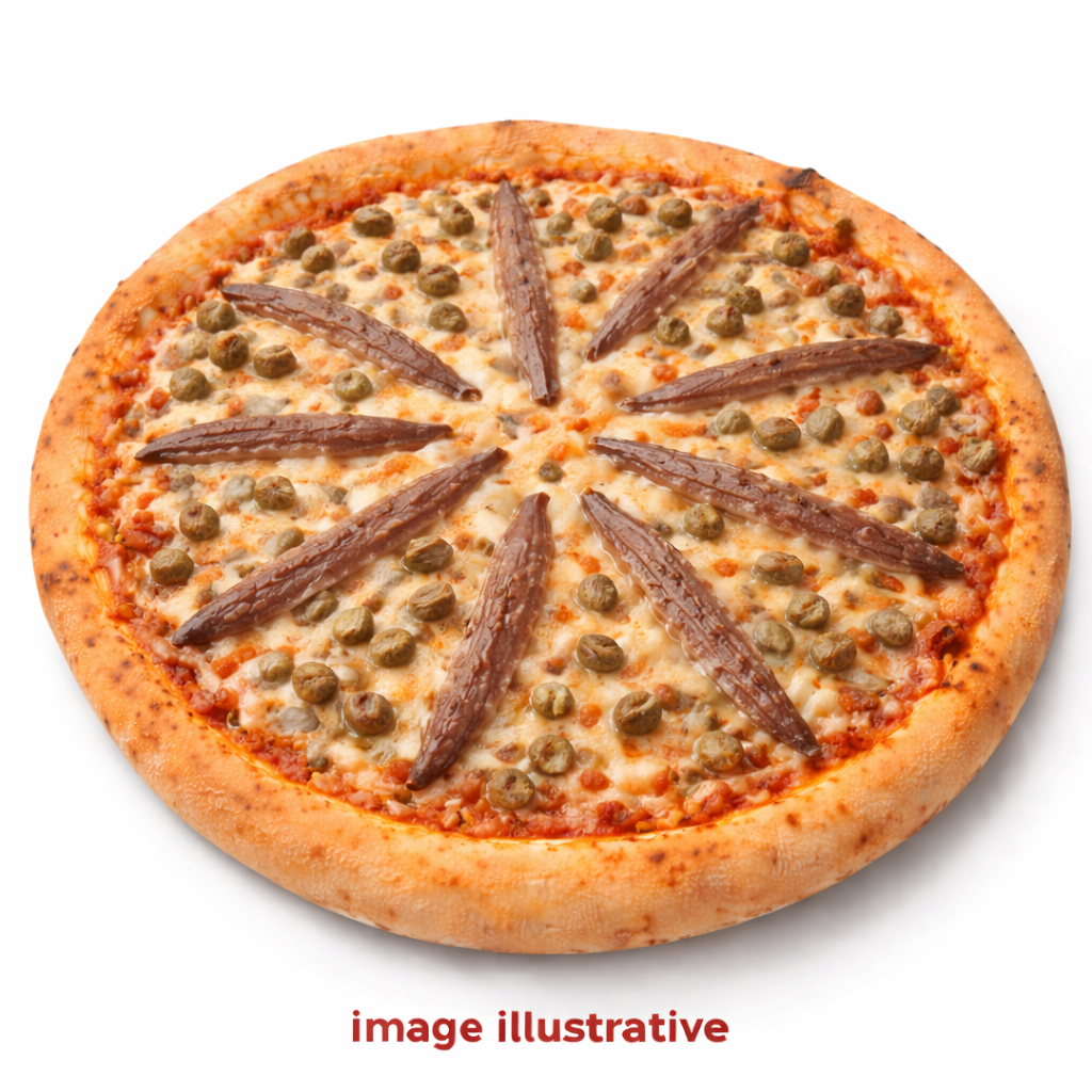 Une ode à la tradition napolitaine. Les anchois salés et les câpres acidulés se marient sur notre pâte croustillante, évoquant les saveurs authentiques de Naples.